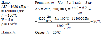 До какой температуры остынут 5 л кипятка, взятого при температуре 100 °С, отдав в окружающее пространство 1680 кДж энергии