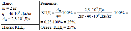Двигатель внутреннего сгорания совершил полезную работу, равную 2,3 • 104 кДж, и при этом израсходовал бензин массой 2 кг. Вычислите КПД этого двигателя
