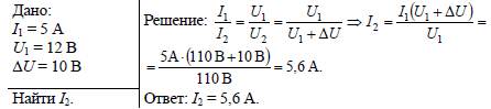 При напряжении 110 В, подведенном к резистору, сила тока в нем равна 5 А. Какова будет сила тока в резисторе, если напряжение на нем увеличить на 10 В