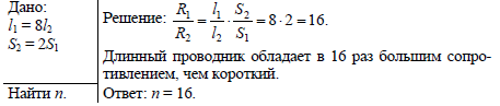 Имеются два однородных проводника, однако первый в 8 раз длиннее второго, который имеет вдвое большую площадь поперечного сечения. Какой из проводников обладает большим сопротивлением; во сколько раз