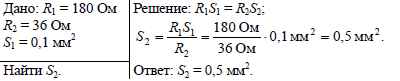 Сопротивление проволоки, у которой площадь поперечного сечения 0,1 мм2, равно 180 Ом. Какой площади поперечного сечения надо взять проволоку той же длины и из того же материала, чтобы получить сопротивление 36 Ом
