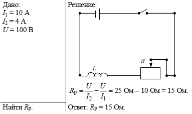В цепь с напряжением 100 В включена катушка электромагнита. При последовательном включении реостата сила тока в цепи уменьшилась от 10 до 4 А. Начертите схему цепи и определите сопротивление реостата