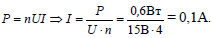 Мощность карманного радиоприемника равна 0,6 Вт. Определите силу тока, потребляемую радиоприемником, если источником питания служат 4 батарейки напряжением 1,5 В каждая, соединенные последовательно