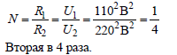Две электрические лампы имеют одинаковые мощности. Одна из них рассчитана на напряжение 110 В, а другая — на напряжение 220 В. Какая из ламп имеет большее сопротивление; во сколько раз