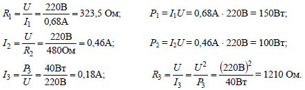 Вычислите значения электрических величин (рис. 351): 1. I1 = 0,68 A, R1 — ? P1 — ? 2. R2=480 Ом, I2 — ? Р2 — ? 3. P3= 40 Вт, I3 — ? R3 — ?