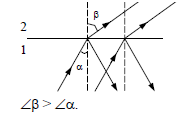 Узкий световой пучок (рис. 396) направлен к гладкой поверхности воды, как показано на рисунке. Начертите в тетради примерный ход пучка света, вышедшего в воздух, и постройте отраженный от поверхности воды пучок света