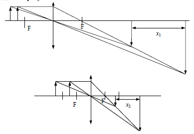 С помощью собирающей линзы можно получить два действительных изображения источника света, помещая источник на расстоянии r1? а затем на расстоянии r2 от фокуса линзы. У какой линзы расстояние между этими изображениями больше — у короткофокусной или у длиннофокусной?