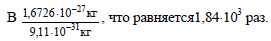 Во сколько раз масса покоя протона больше массы покоя электрона