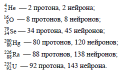 Определите нуклонный состав ядер гелия 42He, кислорода 168O, селена 7934Se, ртути 20080Hg, радия 22688Ra, урана 23592U