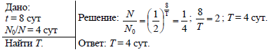 Активность радиоактивного элемента уменьшилась в 4 раза за 8 дней. Каков период полураспада