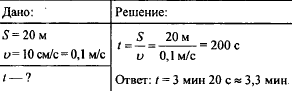 Длина конвейера 20 м. За какое время предмет, поставленный у начала конвейера, придёт к его концу, если скорость движения конвейера 10 см/с