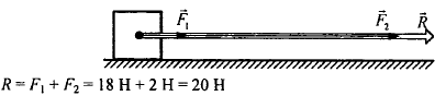 Найдите равнодействующую сил 2 Н и 18 Н, действующих на тело, если они направлены по одной прямой в одну сторону. Дайте графический рисунок