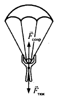 Спортсмен равномерно спускается на парашюте. Какова сила тяжести, действующая на парашютиста вместе с парашютом? Сила сопротивления Воздуха 800 Н