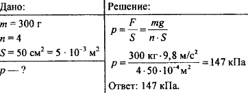 Токарный станок массой 300кг опирается на фундамент четырьмя ножками, средняя площадь каждой из которых 50 см2. Определите давление ставка на фундамент