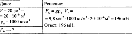 О какой силой выталкивается из речной воды кусок мрамора объемом в 20 см3