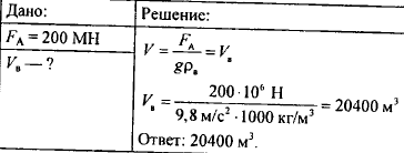 На теплоход действует выталкивающая сила, равная 200 000 кН. Какой объем воды вытеснит этот теплоход