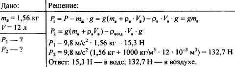 Железное ведро для воды имеет массу 1,56 кг. В это ведро вмещается 12 л воды. Определите силу, с которой приходится тянуть ведро, полное воды, пока оно находится в воде и когда оно поднимается над водой. Трение не учитывать
