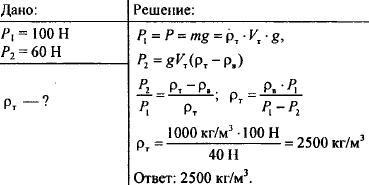 Тело весит в воздухе 100 Н, а в пресной воде 60 Н. Найдите его плотность