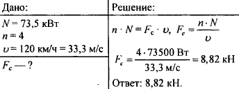 Дирижабль с 4 моторами мощностью 73,5 кВт каждый движется в воздухе со скоростью 120 км/ч. Найдите силу сопротивления воздуха движению дирижабля