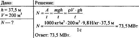 Вода падает в турбины гидростанции с высоты 37,5 м. Секундный расход воды в каждой турбине 200 м3. Определите мощность каждой турбины, используя приведенные данные