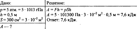 Под давлением пара в 5 атмосфер поршень прошел 0,5 м. Определите работу пара, если площадь поршня равна 300 см2