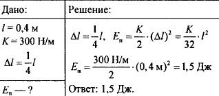 Длина, пружины равна 40 см, ее коэффициент жесткости 300 Н/м. Какой станет потенциальная энергия пружины, если ее растянуть на 1/4 ее длины