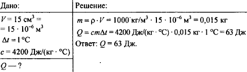 Какое количество теплоты потребуется для того, чтобы 15 см3 воды нагреть на 1 °С