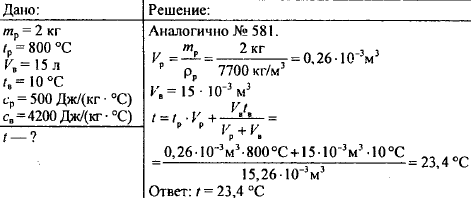 Стальной резец массой 2 кг был нагрет до температуры 800 °С и затем опущен: в сосуд, содержащий 15 л воды при температуре 10 °С. До какой температуры нагреется вода в сосуде? (Указание. Для решения данной задачи необходимо составить уравнение, в котором за неизвестное принять искомую температуру воды в сосуде после опускания резца.)