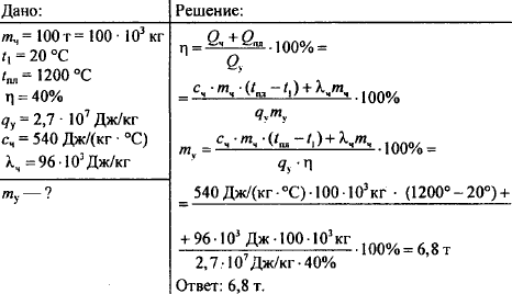 Сколько потребуется каменного угля, чтобы расплавить 100 т чугуна, взятого при температуре 20 °С, если КПД печи 40%