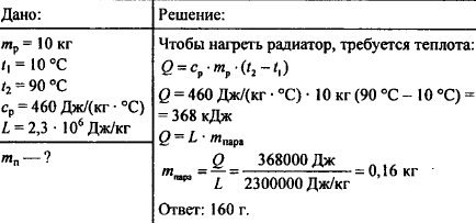 Какую массу пара требуется обратить в воду при температуре 100 °С, чтобы нагреть железный радиатор массой 10 кг от 10 до 90 °С