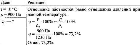 Давление паров воды в воздухе при температуре 10 °С равно 900 Па. Найдите относительную влажность воздуха