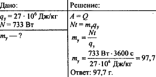 Какое количество каменного угля было бы достаточно для машины мощностью 733 Вт в час, если бы вся тепловая анергия угля обращалась в полезную работу