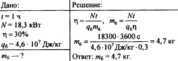 Сколько потребуется бензина в час на работу мотора мощностью 18,3 кВт с коэффициентом полезного действия 30%