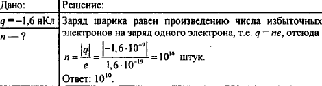 Заряд металлического шарика равен —1,6 нКл. Сколько избыточных электронов на шарике