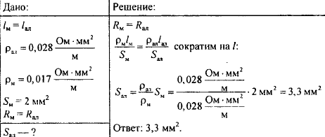 Какого сечения нужно взять алюминиевую проволоку, чтобы сопротивление её было такое же, как у медной проволоки с площадью поперечного сечения 2 мм2, если длины обеих проволок одинаковы