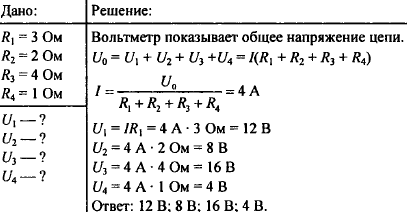 Определите напряжение на каждом участке цепи (рис. 84), если вольтметр, подключенный к зажимам батареи, показывает напряжение 40 В
