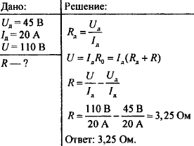 Вольтова дуга, рассчитанная на напряжение 45 В и силу тока в 20 А, включается в цепь напряжением 110 В. Какое сопротивление следует включить последовательно с прибором, чтобы сила тока в нем не превышала допустимое значение