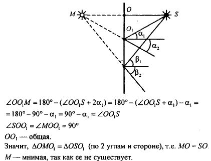 Докажите, что светящаяся Точка и ее изображение в плоском зеркале находятся от зеркала на равных расстояниях. Почему изображение точки называют мнимым