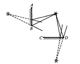Постройте изображение точечного источника света S в зеркале АВ и в зеркале CD, показанных на рисунке 120. Сколько изображений дает такая система зеркал? Проверьте это на опыте