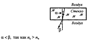 Луч, идущий наклонно к грани стеклянной пластинки, выходит в воздух (рис. 122). Начертите ход луча в воздухе