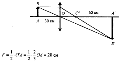 Расстояния от предмета и от его действительного изображения до собирающей линзы d = 30 см и f = 60 см. Определите фокусное расстояние линзы
