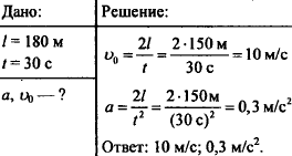 Поезд, идущий с некоторой скоростью, проходит после начала торможения до остановки 150 м. С какой скоростью двигался поезд перед началом торможения, если торможение длилось 30 с? Найдите ускорение поезда