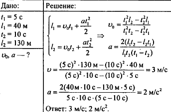 Легковой автомобиль ВАЗ, двигаясь равноускоренно с начальной скоростью, за первые 5 с прошел 40 м, а за первые 10 с — 130 м. Определите, начальную скорость автомобиля и его ускорение