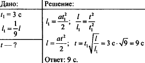 Первый вагон трогающегося от остановки равноускоряющегося поезда проходит за 3 с мимо наблюдателя, находившегося до отправления поезда у начала этого вагона. За какое время пройдет мимо наблюдателя весь поезд, состоящий из 9 вагонов