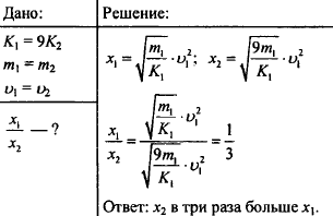 Первый шар колеблется на пружине, имеющей жесткость в 9 раз большую, чем жесткость пружины, на которой колеблется второй шар такой же массы. Какой из шаров и во сколько раз дальше надо отвести от положения равновесия, чтобы их максимальные скорости были одинаковы