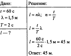 Волна от катера, проходящего по озеру, дошла до берега за 1 мин, причем расстояние между соседними гребнями оказалось равным 1,5 м, а время между двумя последовательными ударами волн о берег 2 с. Как далеко от берега проходил катер