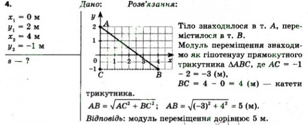 у точку з координатами х 2 = 4 м, у 2 = -1 м. Зробіть побудову на
