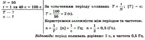 Маятник зробив 50 коливань за 1 хв 40 с. Визначте період і частоту