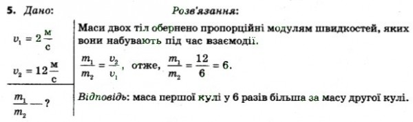 Унаслідок зіткнення дві кульки, які рухались назустріч одна одній, зупинились. Порівняйте маси кульок, якщо початкова швидкість першої кульки 2 м/с, а другої — 1 2 м/с.