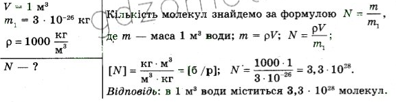 Скільки молекул міститься в 1 м3 води, якщо маса однієї молекули 3*10 -26кг?